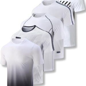 5 Pack Men\u2019s Active Quick Dry Crew Neck T Shirts | Athletic Running Gym Workout Short Sleeve Tee Tops Bulk